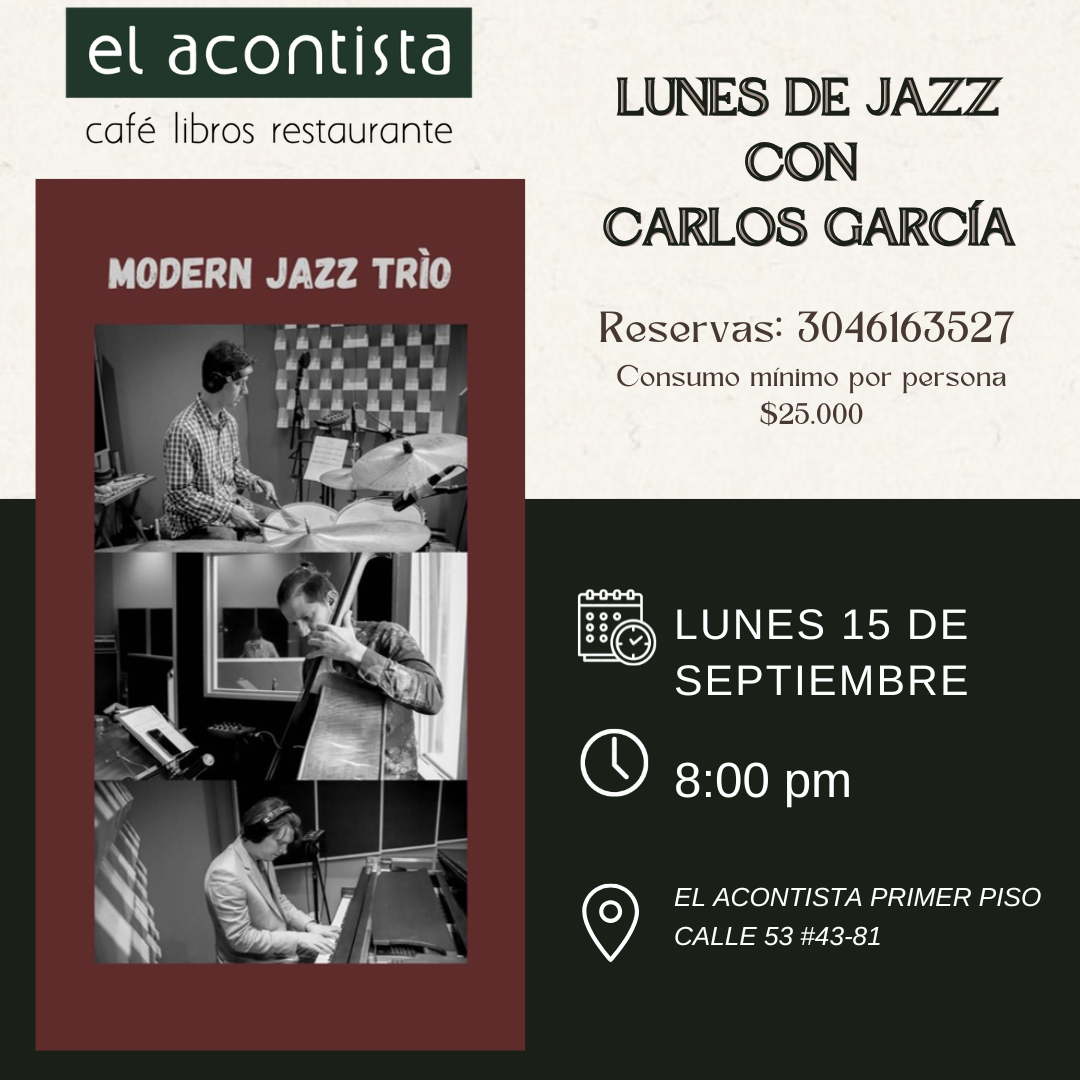 Qué esperas para separar tu cupo en nuestro lunes de Jazz junto a Carlos García.