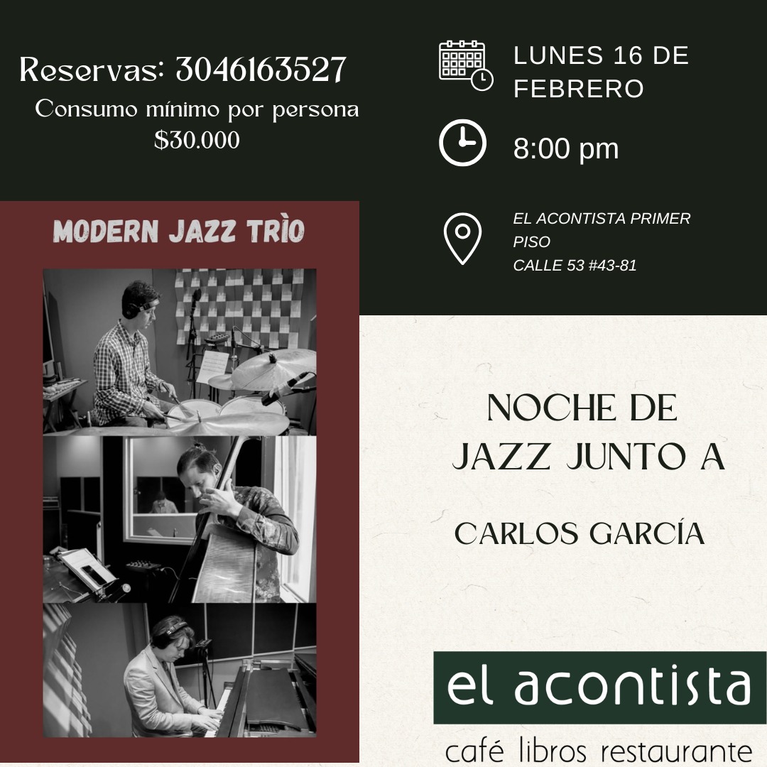 Recuerda separa tu cupo en nuestro próximo lunes de Jazz junto a Carlos García.