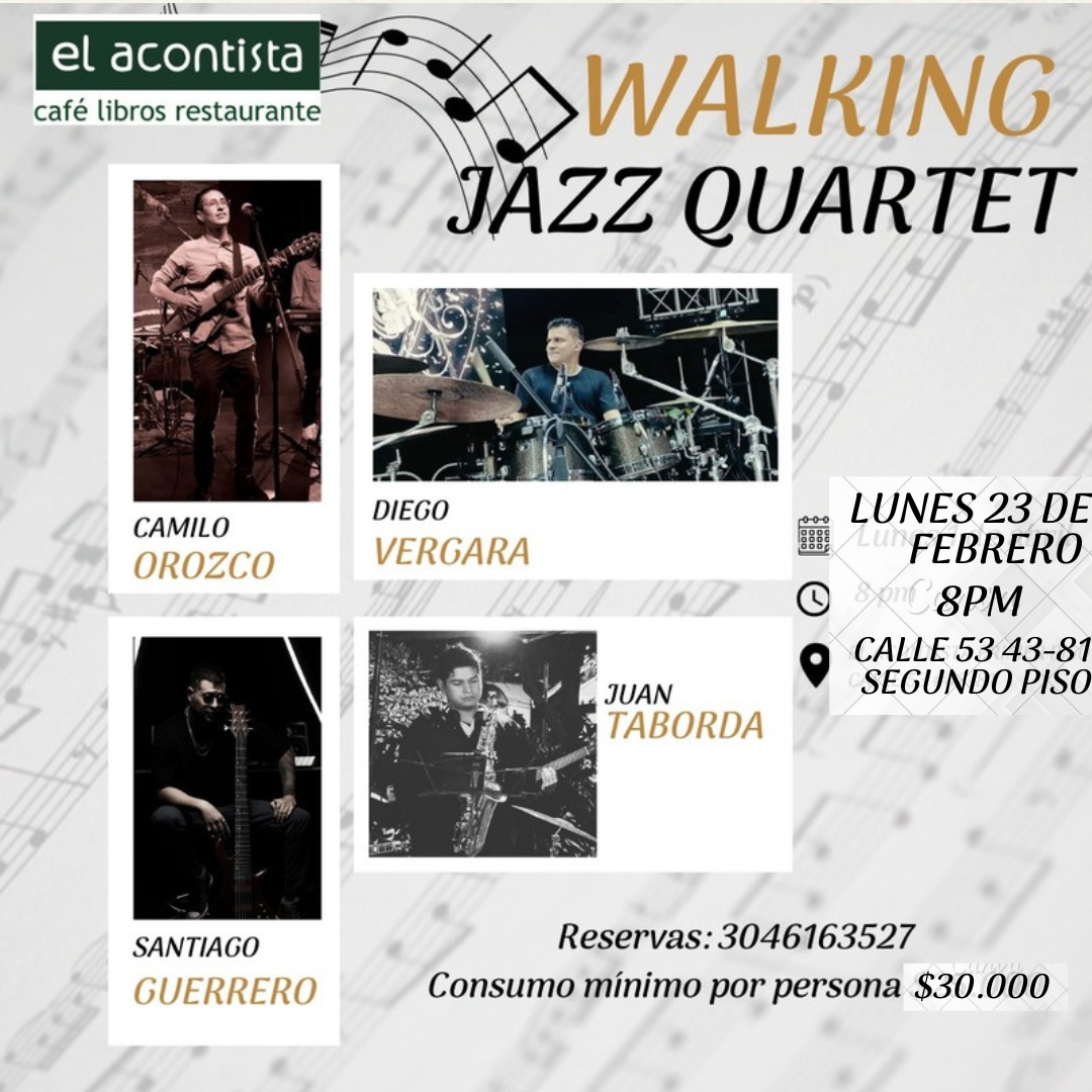 Te esperamos en este próximo lunes de jazz junto a Walking Jazz Quartet.