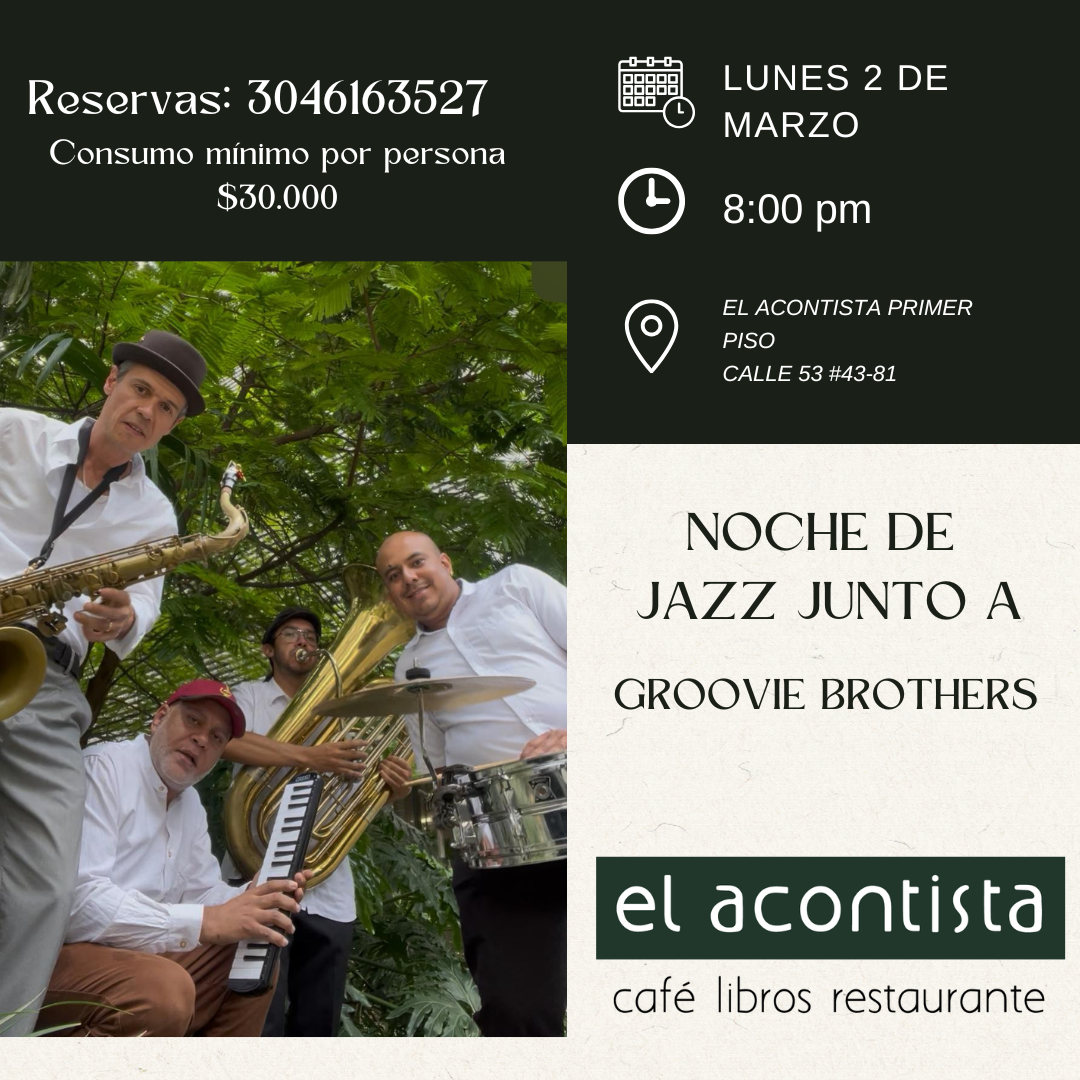 Ven y sé parte de este nuevo lunes de Jazz junto a Groovie Brothers.